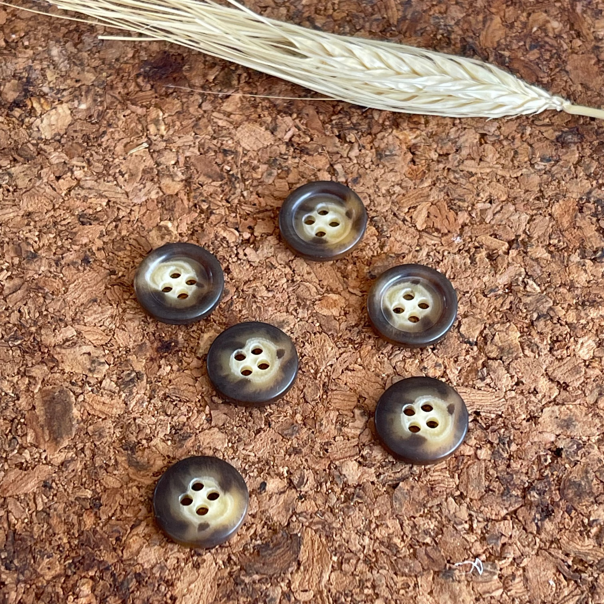 Bouton 15 mm en pvc brun et blanc rond - 4 trous.