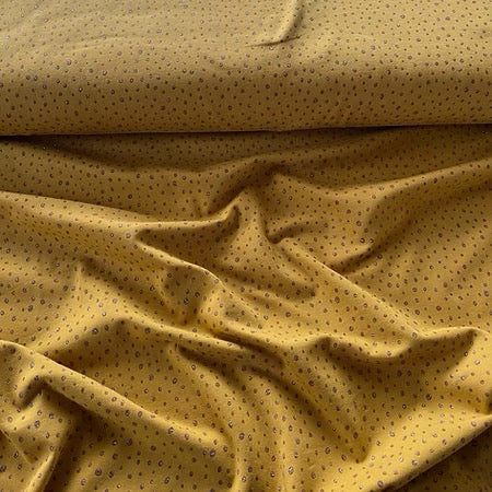 Un jersey de coton moutarde avec des pois brillants argentés.