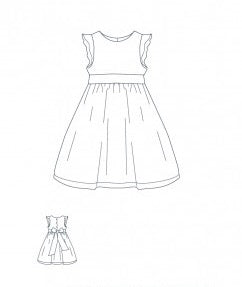 le patron de la robe Sophie, est sans manches avec des volants sur les épaules. Ces volants peuvent être cousus en bicolores.