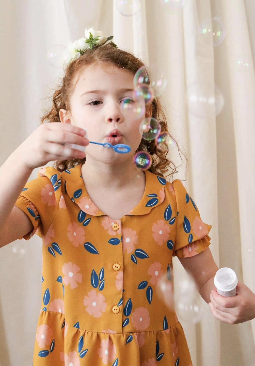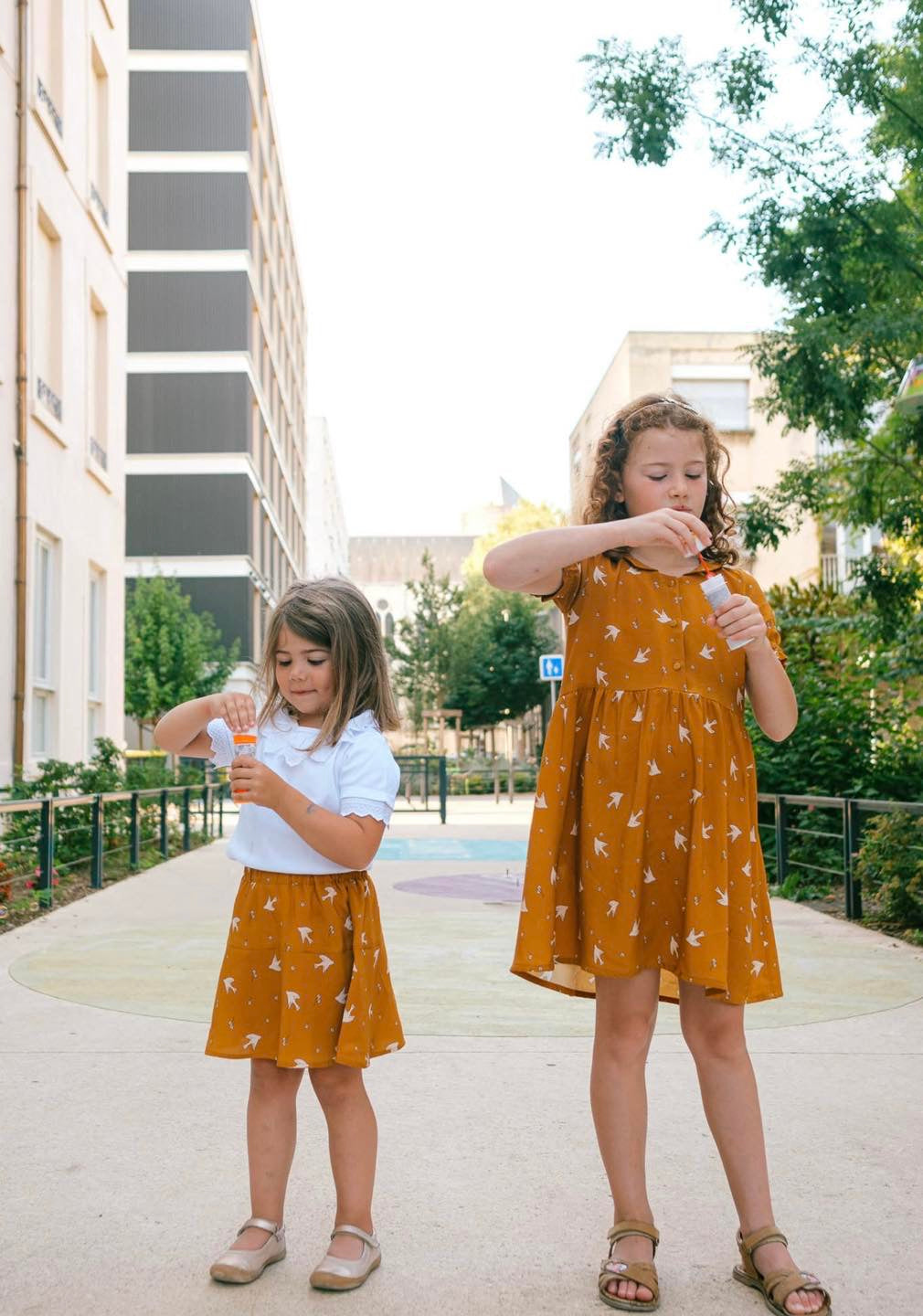 « Petite » Comète a été pensée pour le confort des enfants. Nous avons opté pour une taille froncée à la différence de la version adulte qui est élastiquée à la taille. Ainsi les petites filles sont libres de leurs mouvements pour jouer !