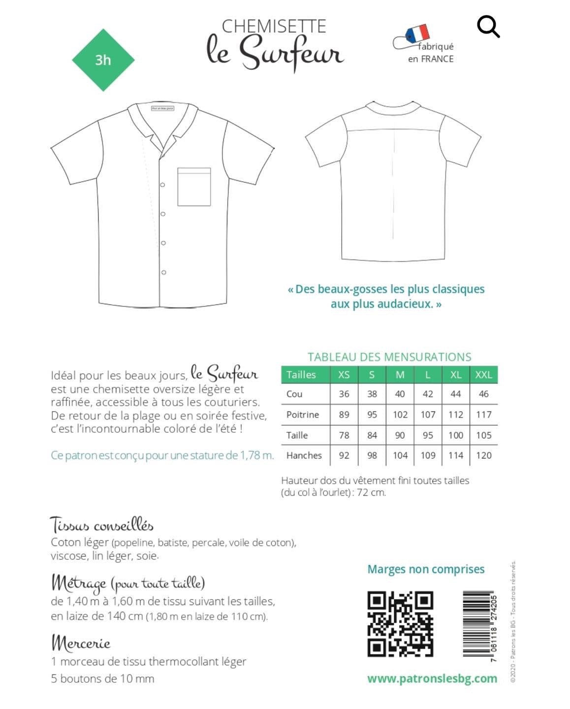 Patron en taille réelle prêt à décalquer ou découper du XS au XXL.